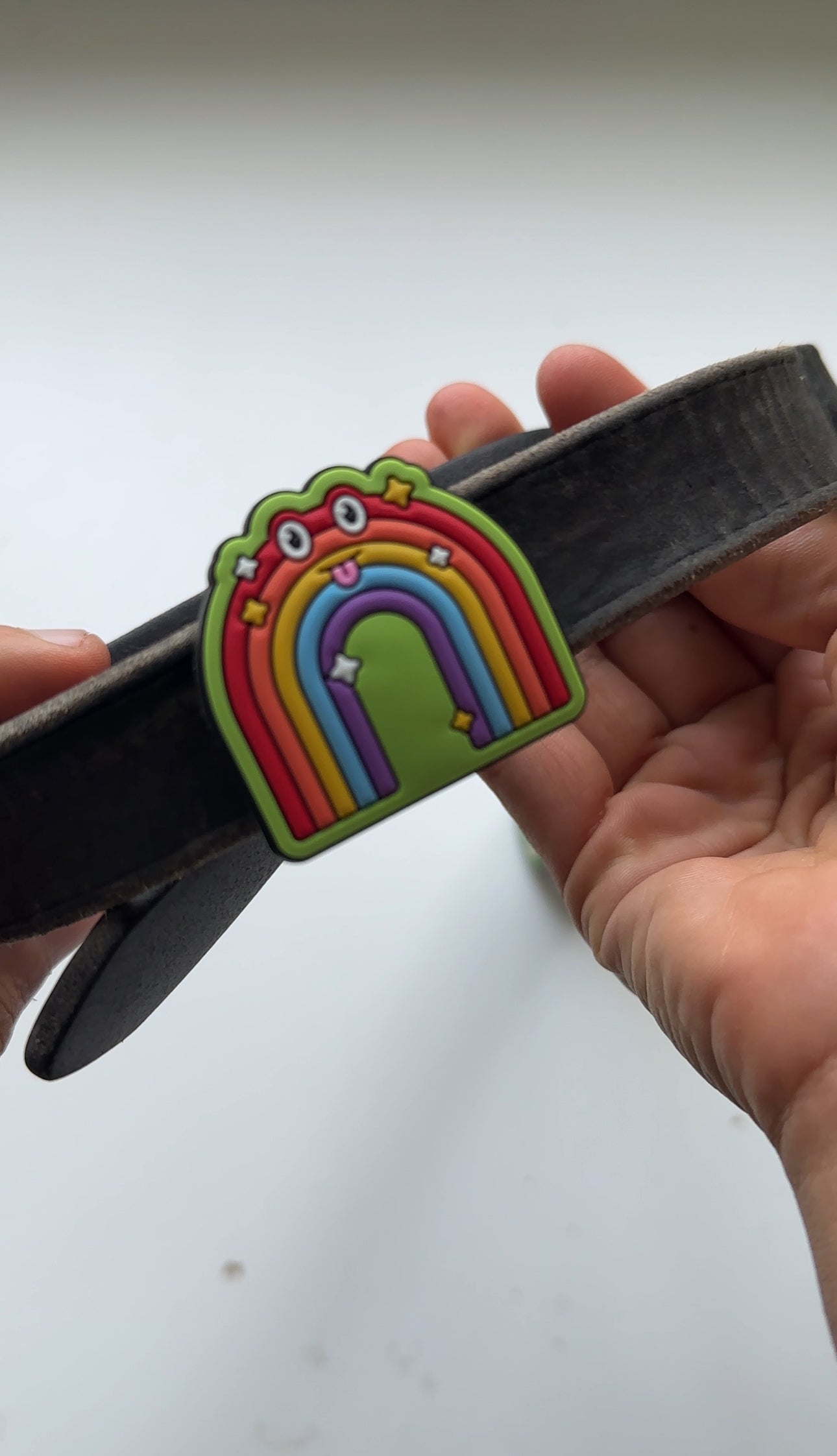 Stretch the strap on the back of the badge over one end of any collar, leash, harness, or personal accessory of choice and simply slide into the desired place.